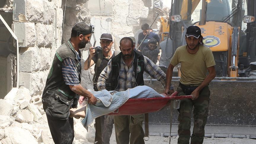 A regime helicopter struck twice a mourning tent in the opposition-held Bab al-Nairab district in Aleppo, Ibrahim Abu Leith told Anadolu Agency.