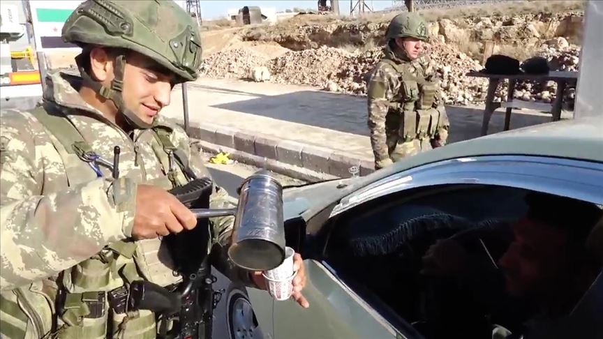 Syria: Turkish soldiers offer hot drinks at checkpoints