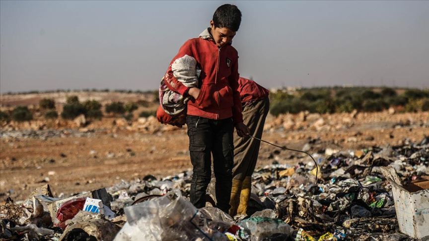 In Idlib's town of Sinjar, captured by regime forces with Russian air support, children are trying to provide financial support to their families by working in garbage dumps.