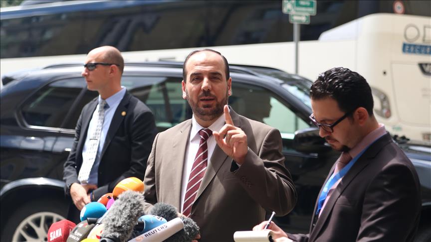 Speaking after meeting UN envoy Staffan de Mistura on the third day of the latest round of Syria peace talks, Nasr al-Hariri told reporters: