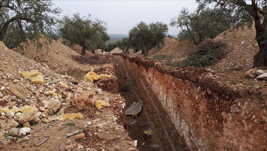 Terrorists are using civilians to dig kilometer-long ditches to block operations by Turkish-led forces in Afrin, northwestern Syria.