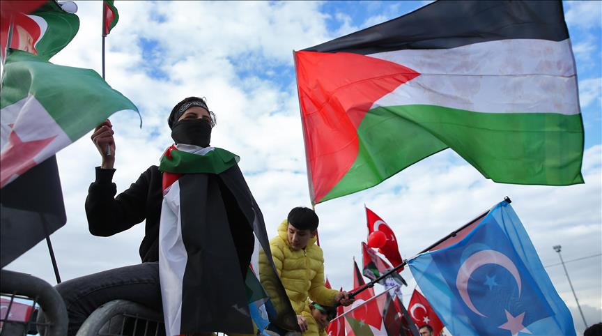 Thousands of people flocked to Istanbul’s Yenikapi Square on Sunday, protesting the U.S. move to recognize Jerusalem as the capital of Israel.