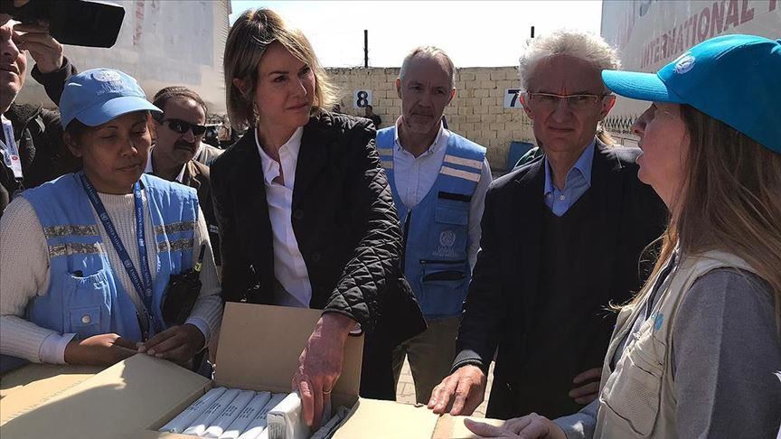 Kelly Craft and James Jeffrey visited a logistics center in the district of Reyhanli in Hatay province. At the center which distributes UN aid to Syrians, Craft and Jeffrey were informed by UN humanitarian affairs chief Mark Lowcock on the latest developments on the ground.