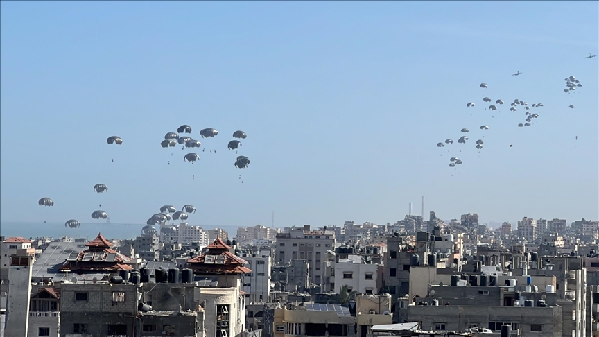 The airdrop was part of the Birds of Goodness operation, which aims to alleviate the suffering of the Palestinian people.