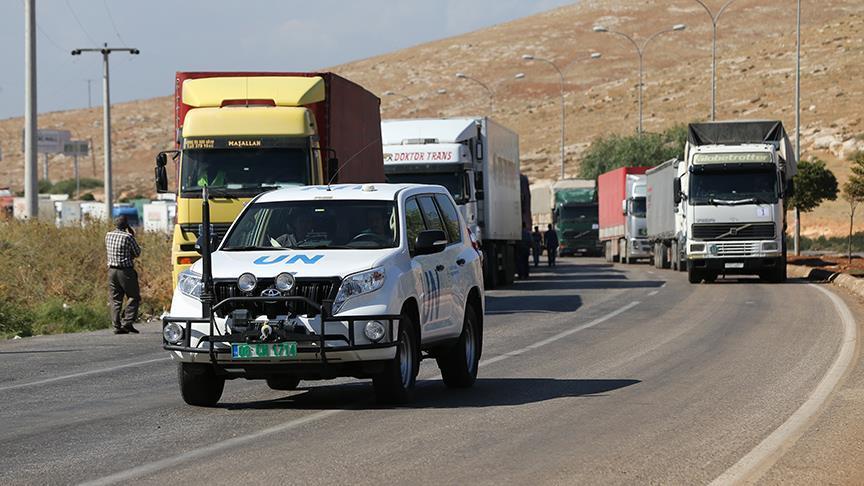 Nineteen trucks loaded with humanitarian aid have been sent to war-torn Syrian city of Idlib from Turkish border town of Cilvegozu in the southern province of Hatay