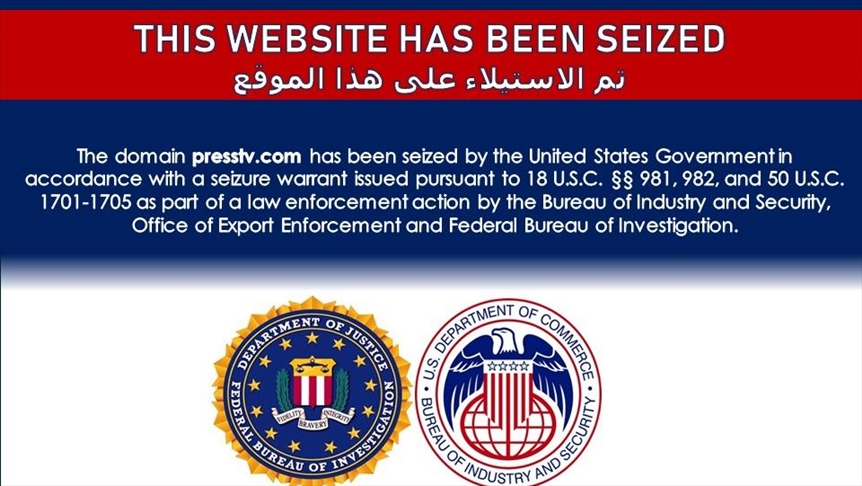 "The domain presstv.com has been seized by the United States Government in accordance with a seizure warrant issued pursuant to 18 USC 981, 982 and 50 USC 1701-1705 as part of a law enforcement action by the Bureau of Industry and Security, Office of Export Enforcement and Federal Bureau of Investigation," the message on PressTV website reads.
