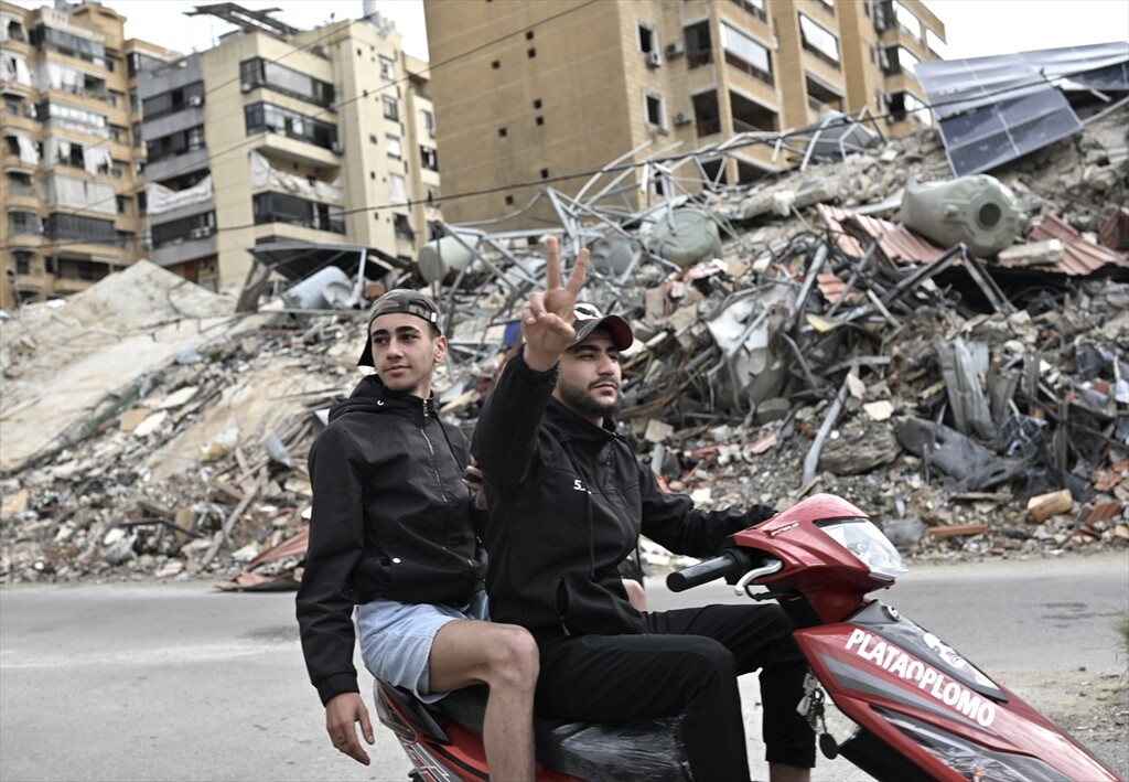 People are seen in the streets of Dahieh region after the commencement of a 10-day temporary ceasefire between Israel and Lebanon on April 17, 2026 in Beirut, Lebanon.