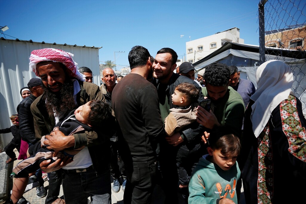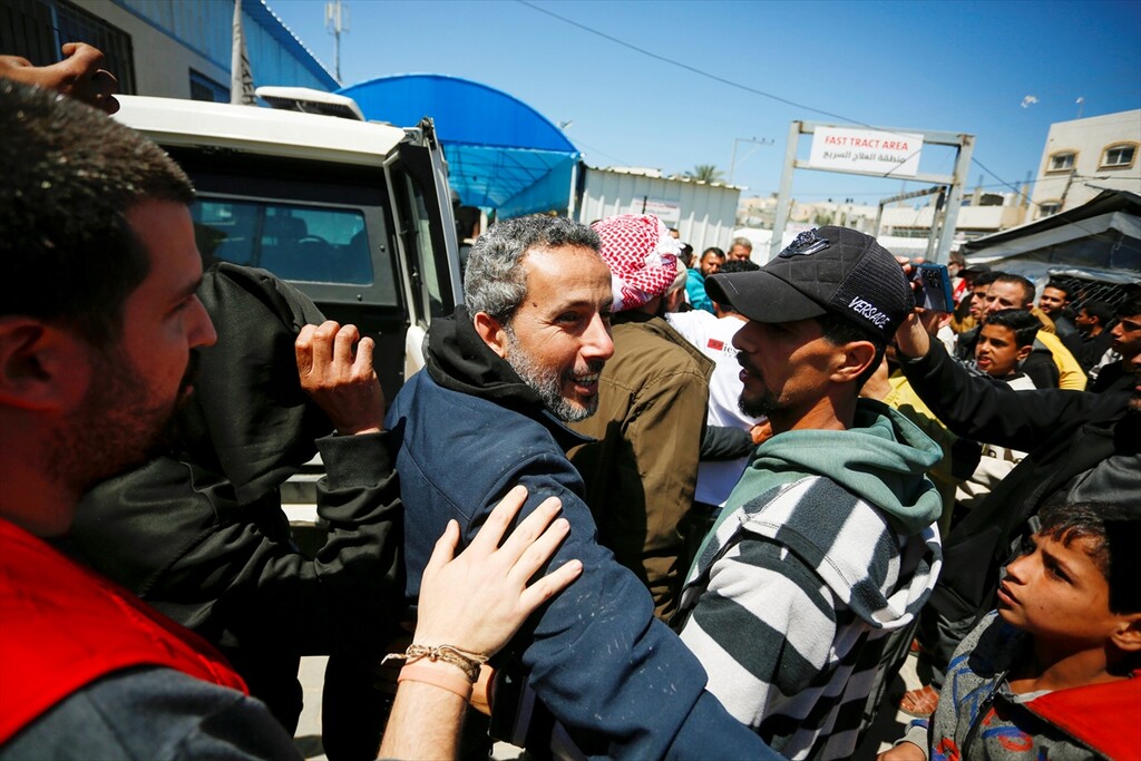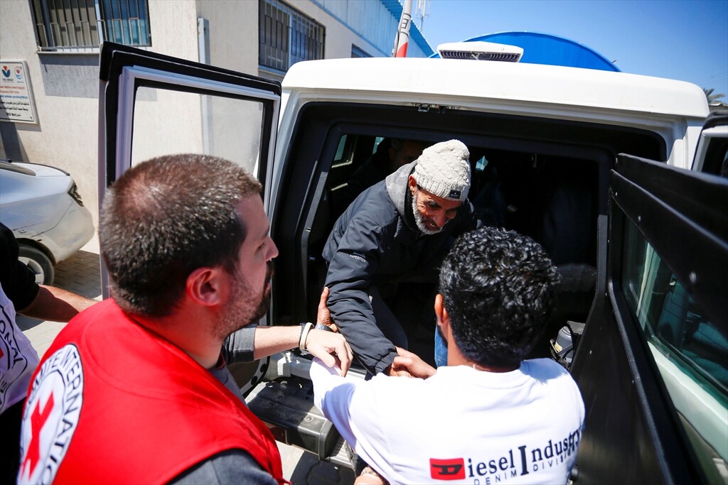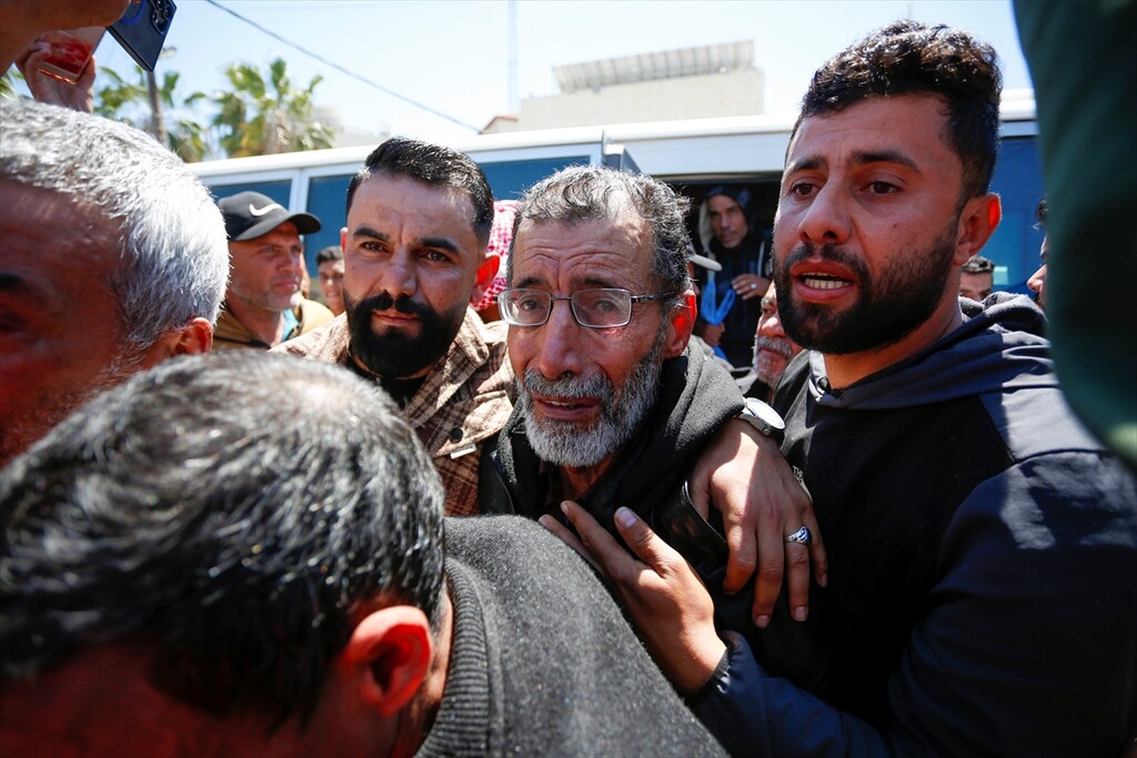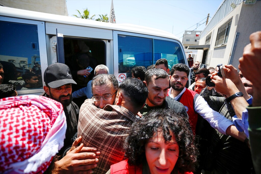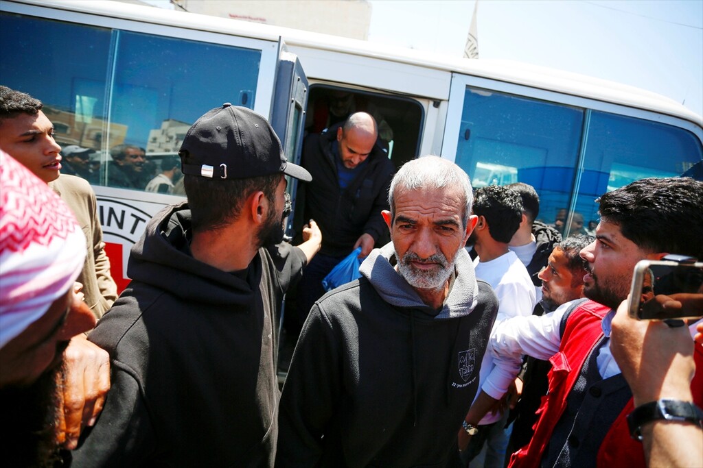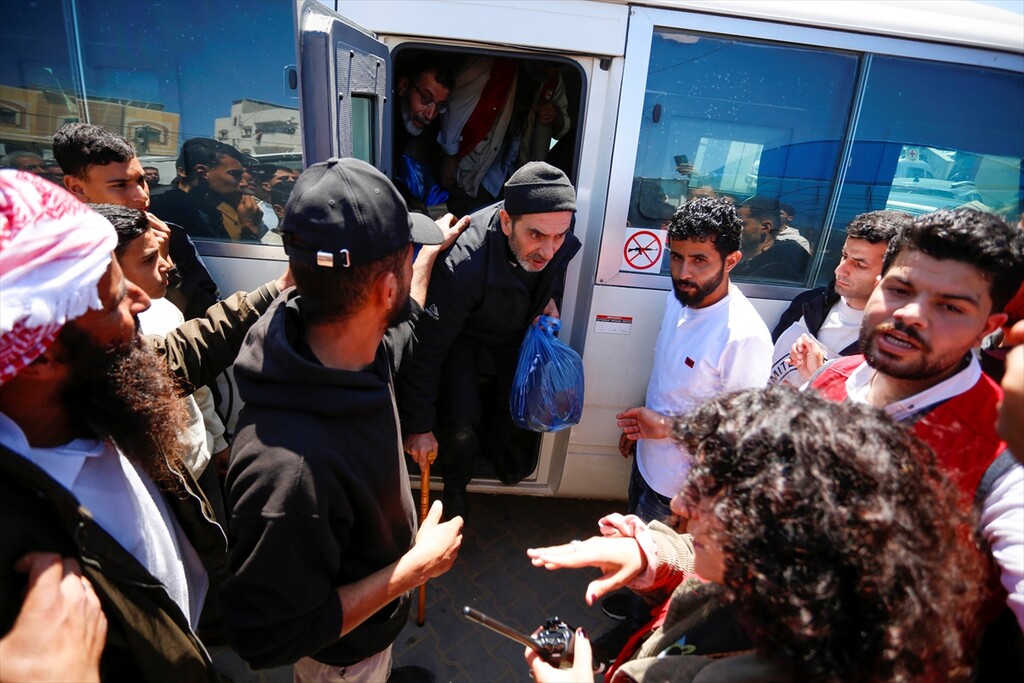 Freed Palestinian detainees arrive in Deir al-Balah, Palestine, via the International Committee of the Red Cross and are taken to Al-Aqsa Martyrs Hospital for medical checks, where they are welcomed by their relatives, on April 09, 2026.