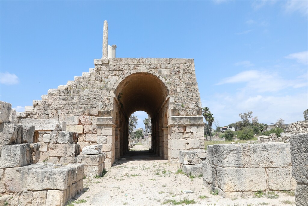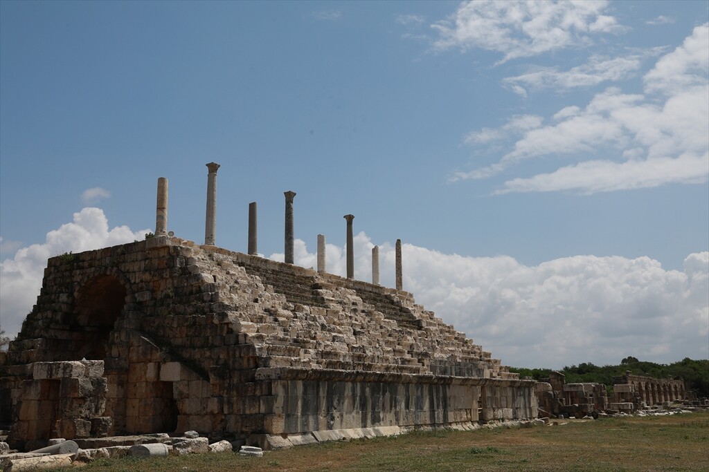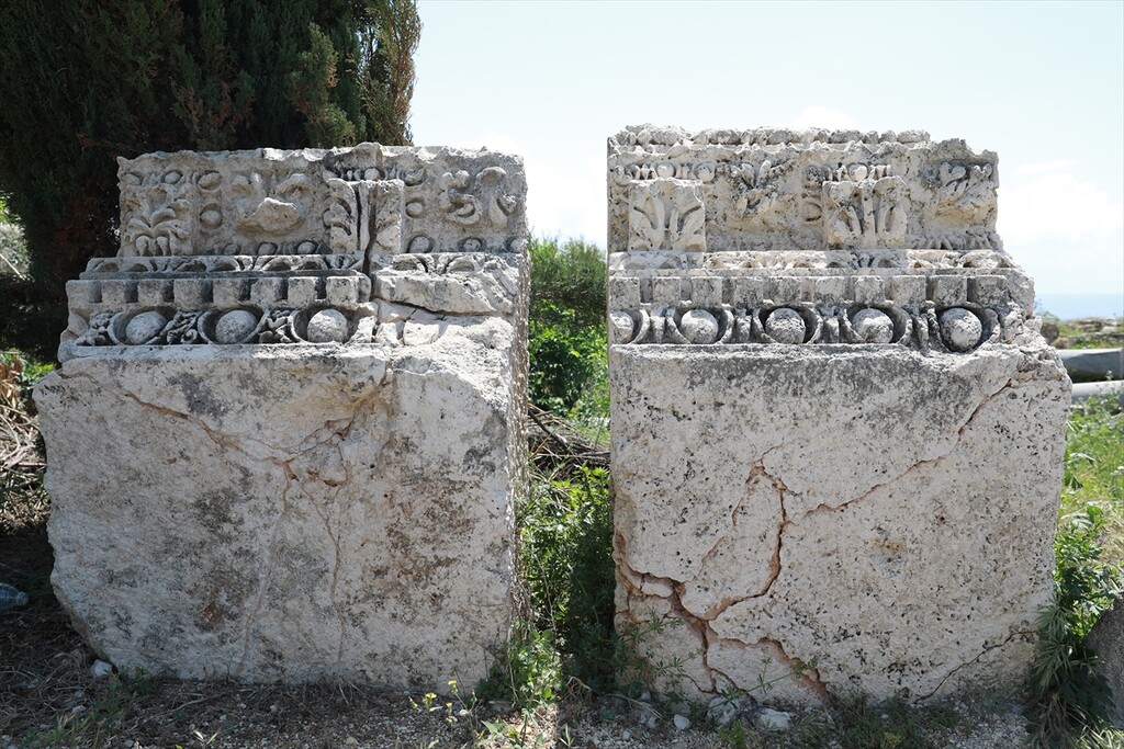 A view of the historical artifacts, listed as a UNESCO World Heritage Site since 1984, after they were damaged in an Israeli attack targeting a house in Tyre, Lebanon on April 20, 2026.