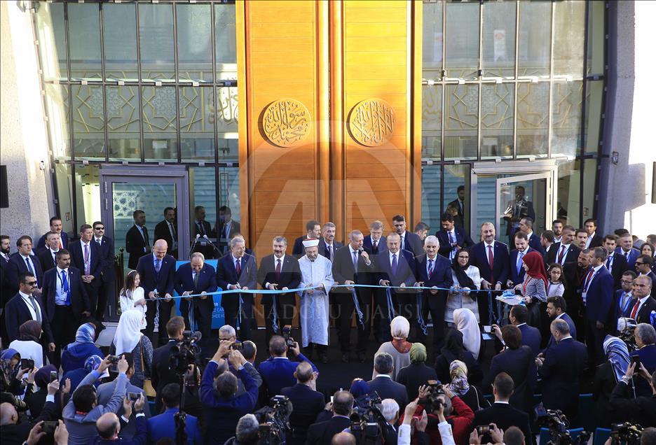COLOGNE, GERMANY - SEPTEMBER 29: Turkish President Recep Tayyip Erdogan (right 2), his wife Emine Erdogan (R) and President of Religious Affairs of Turkey Ali Erbas (left 3) attend the opening ceremony of new Cologne Central Mosque in Cologne, Germany on September 29, 2018. ( Kayhan Özer - Anadolu Agency )Kayhan Özer