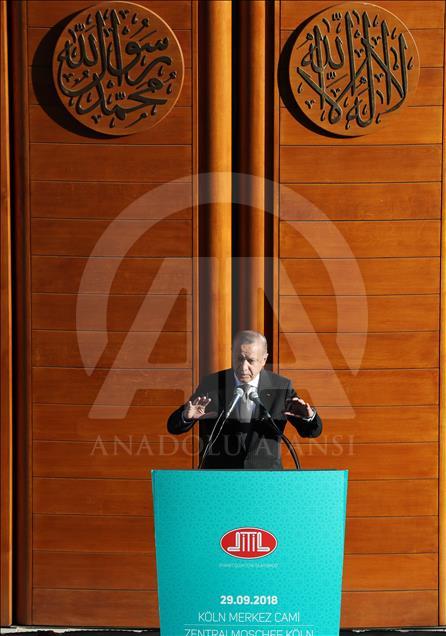 COLOGNE, GERMANY - SEPTEMBER 29: Turkish President Recep Tayyip Erdogan delivers a speech during the opening ceremony of new Cologne Central Mosque in Cologne, Germany on September 29, 2018. ( Kayhan Özer - Anadolu Agency )Kayhan Özer