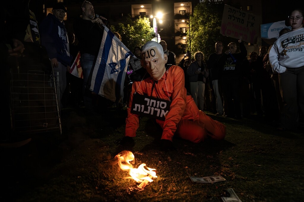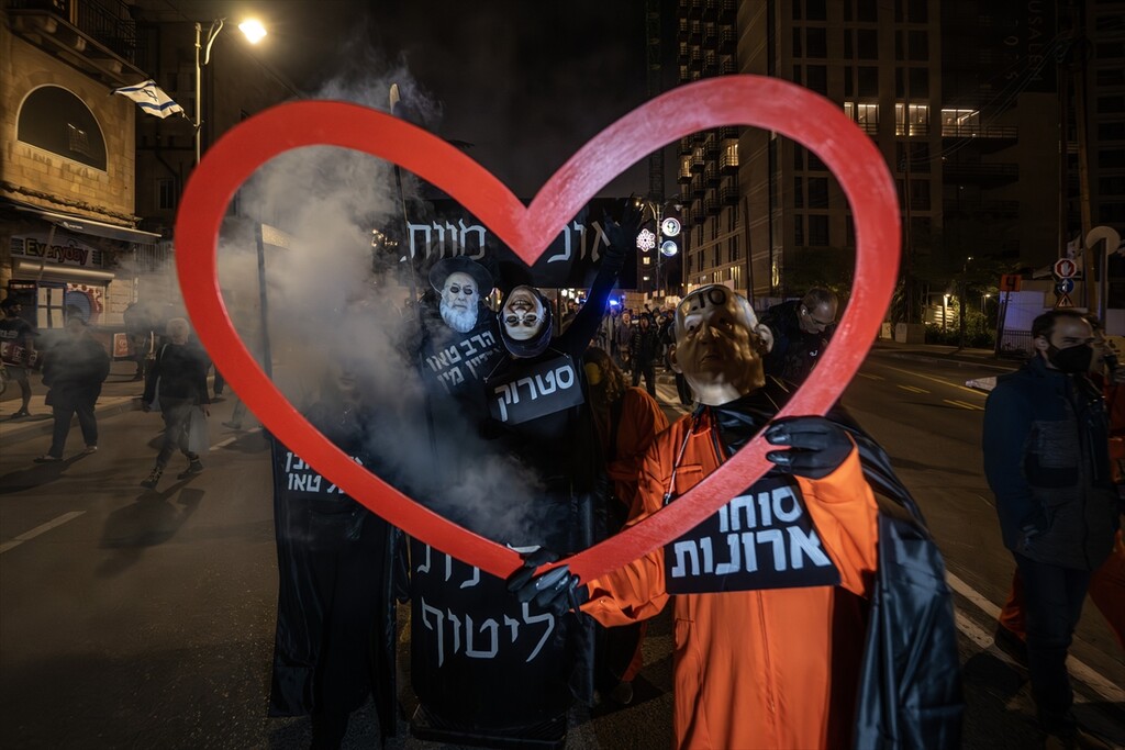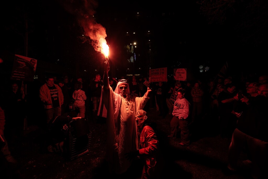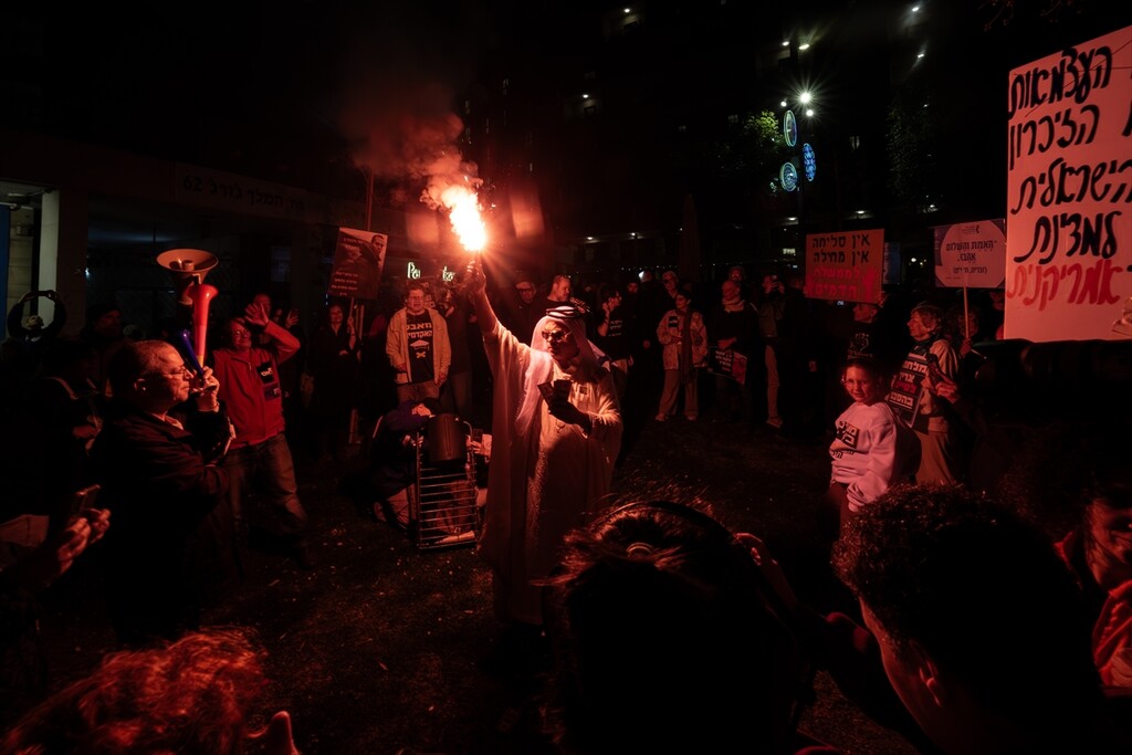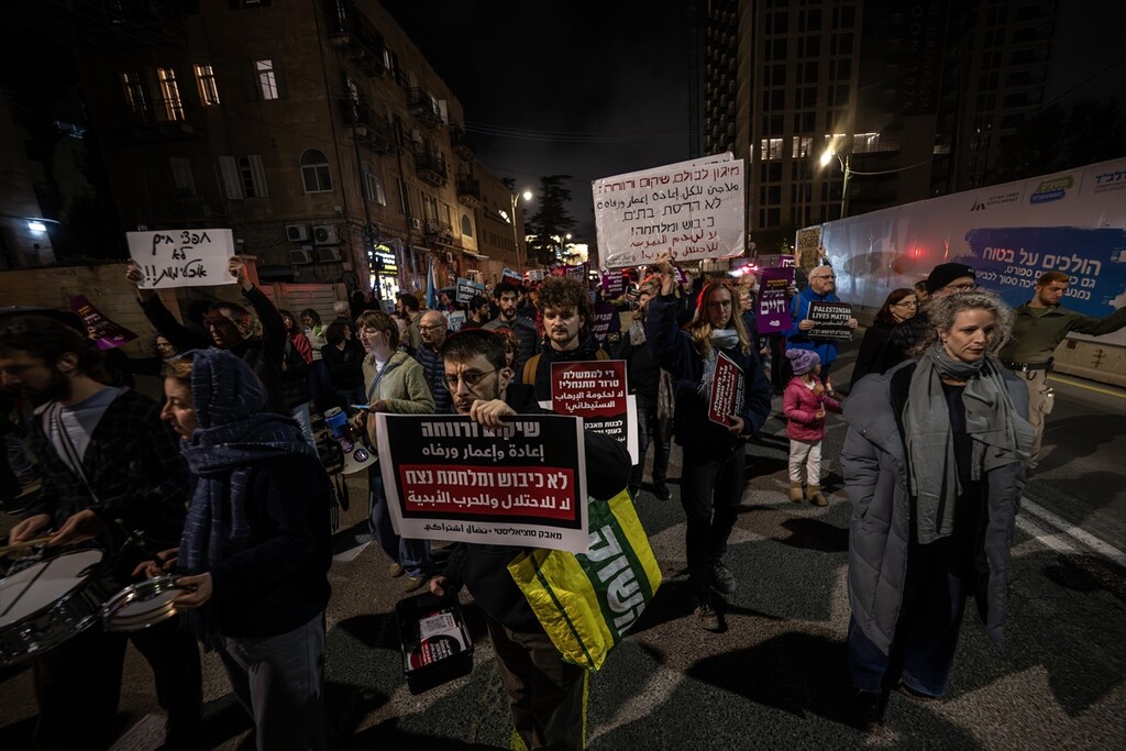 People gather to protest the policies of Israeli Prime Minister Benjamin Netanyahu and his government toward Palestinians in West Jerusalem on April 18, 2026.