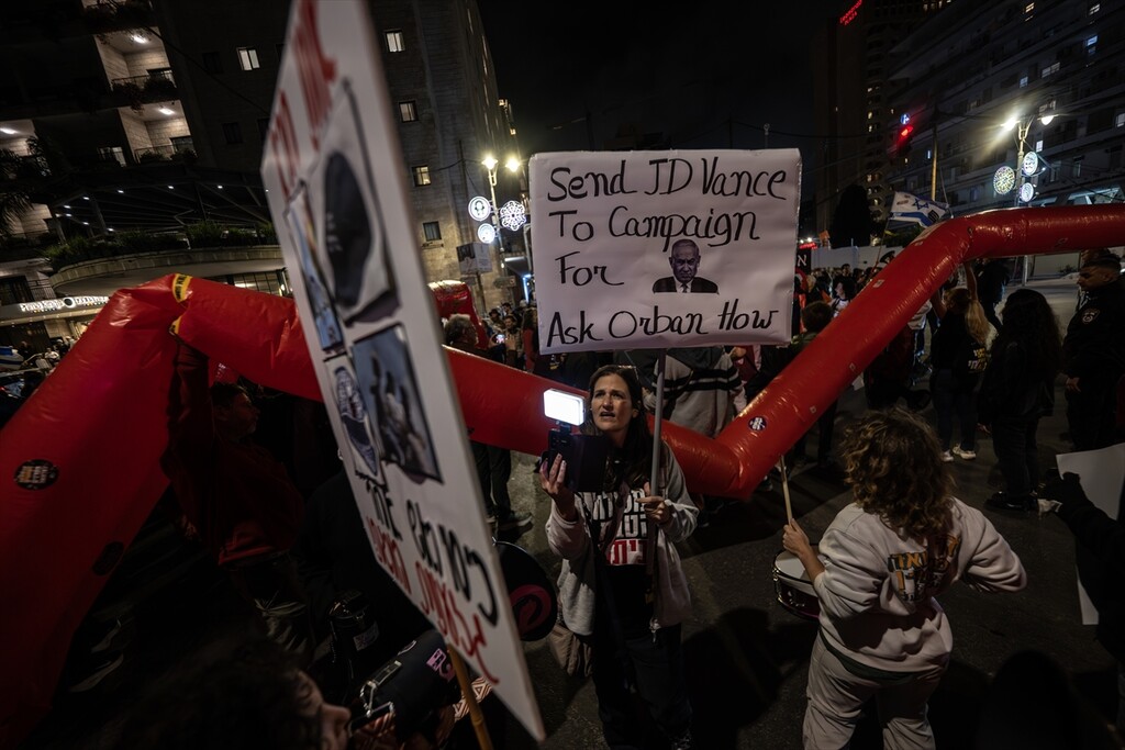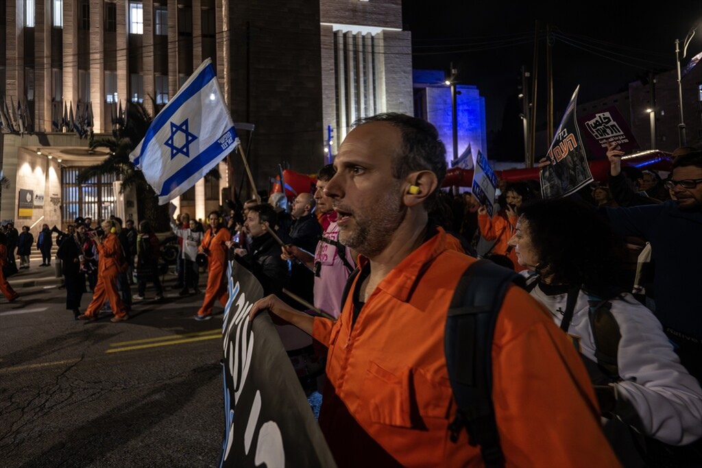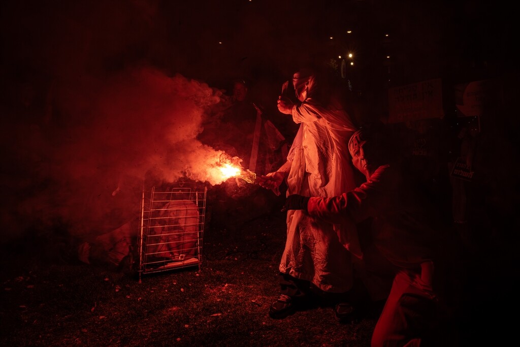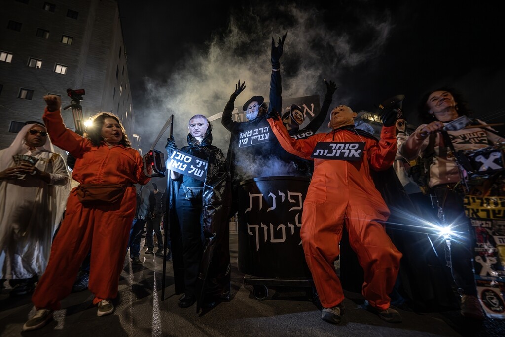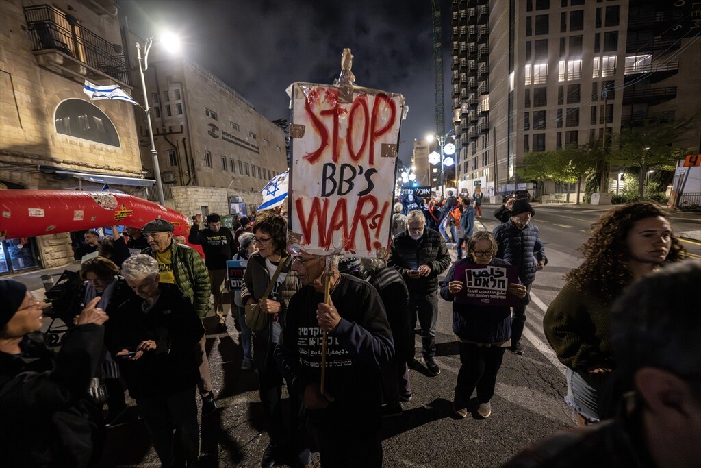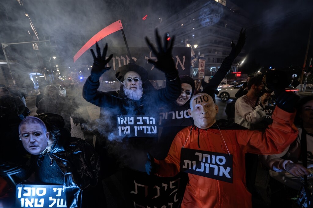 People gather to protest the policies of Israeli Prime Minister Benjamin Netanyahu and his government toward Palestinians in West Jerusalem on April 18, 2026.