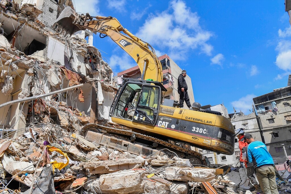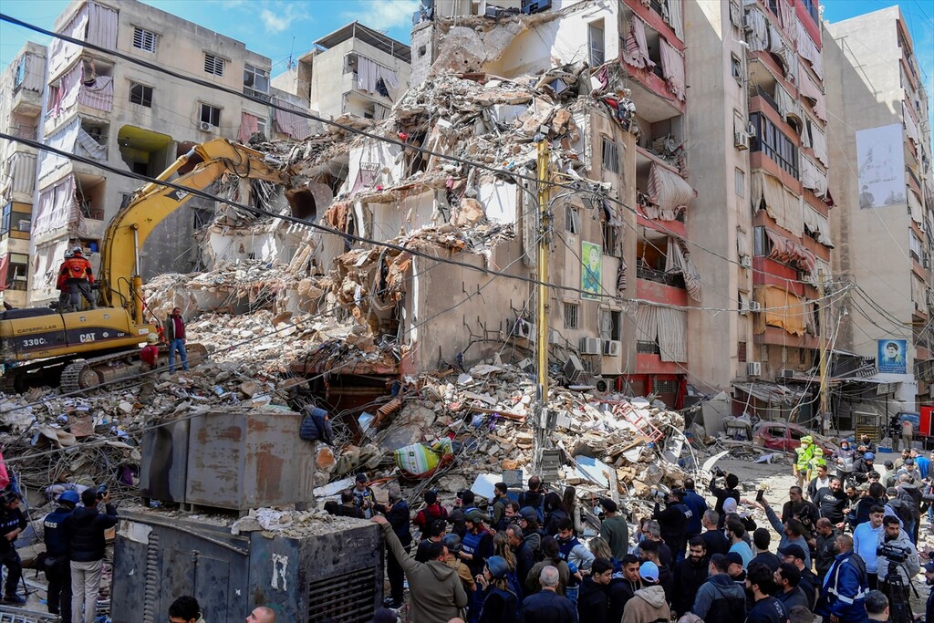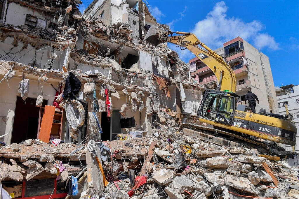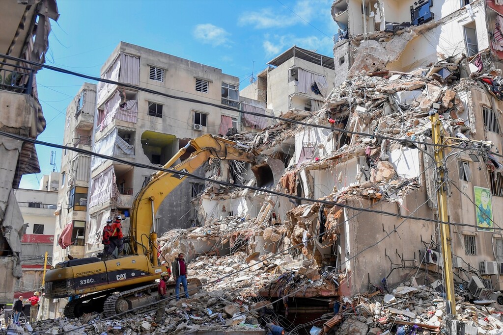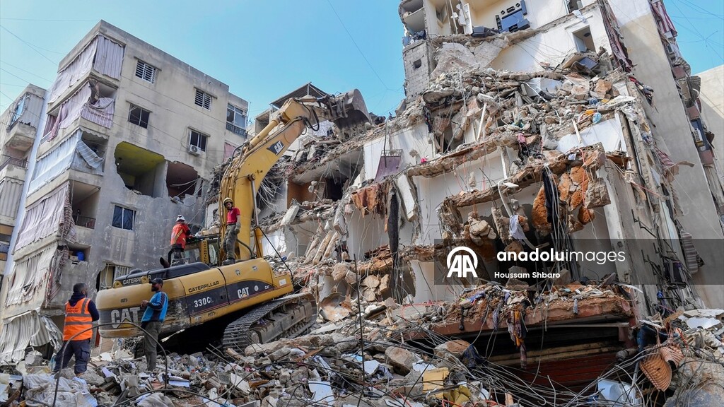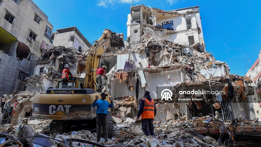 Relief efforts and debris removal continues after Israeli attacks in Dahieh district of Beirut, Lebanon on April 10, 2026.