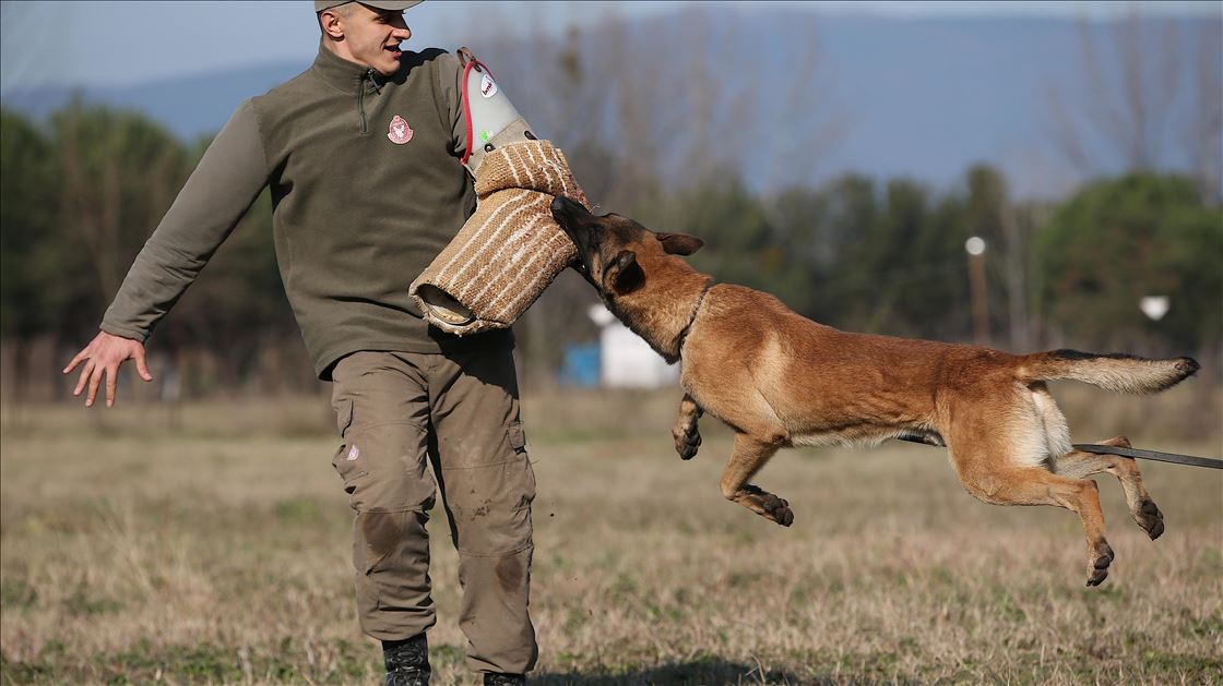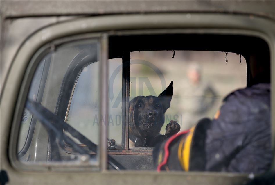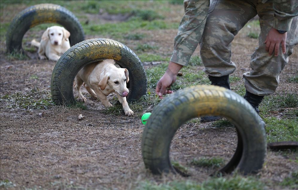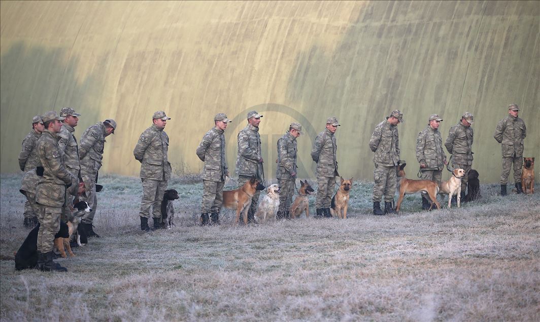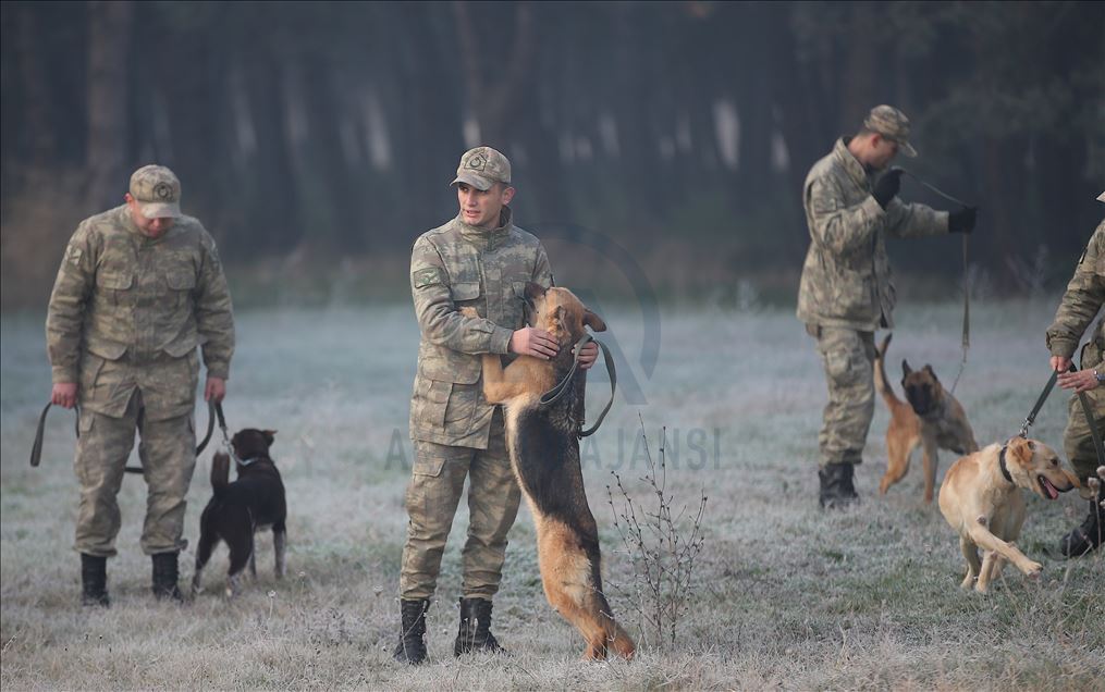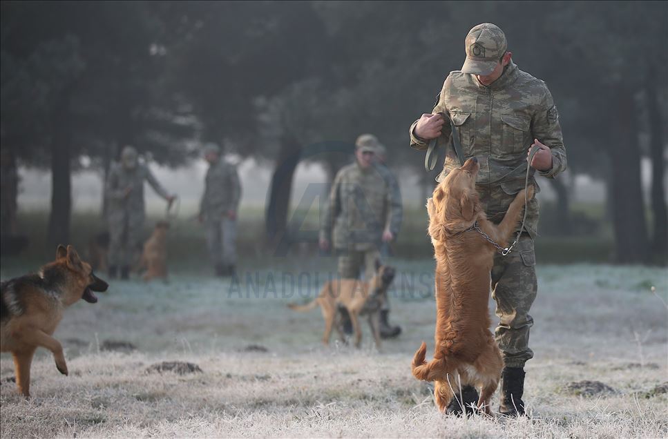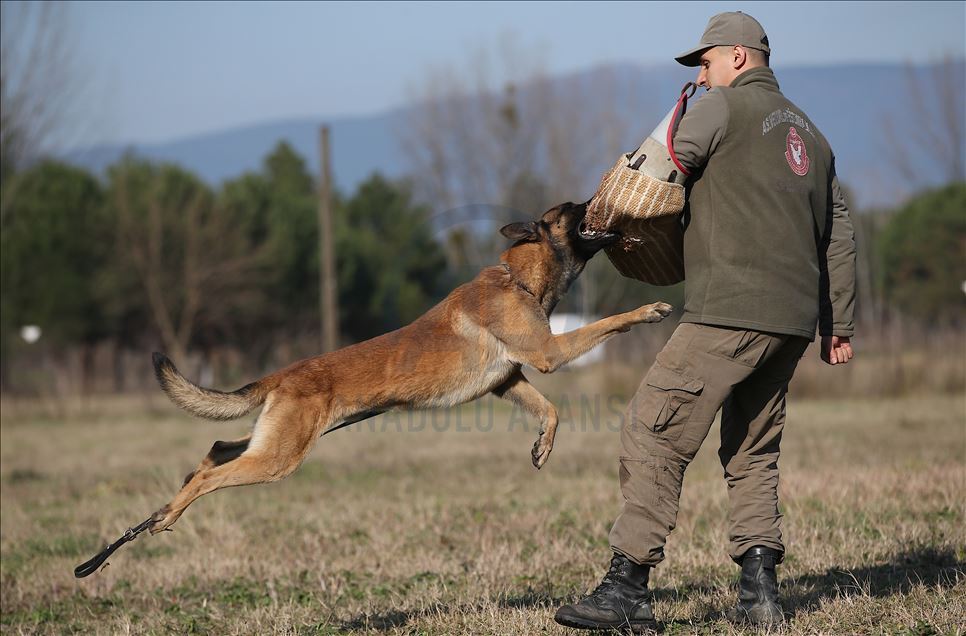 Military working dogs are being trained by Turkish soldiers at Military Veterinary School and Training Command at Gemlik district of Bursa, Turkey on January 17, 2020. Military trained dogs carrying out missions such as reconnaissance of mines and bombs in the risky operations.