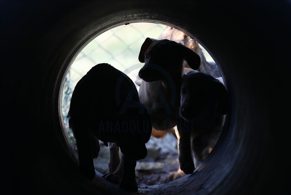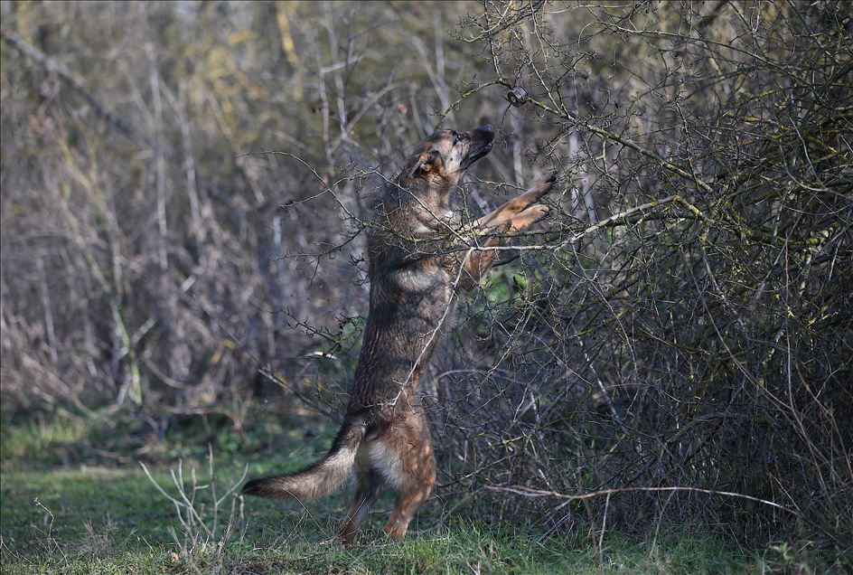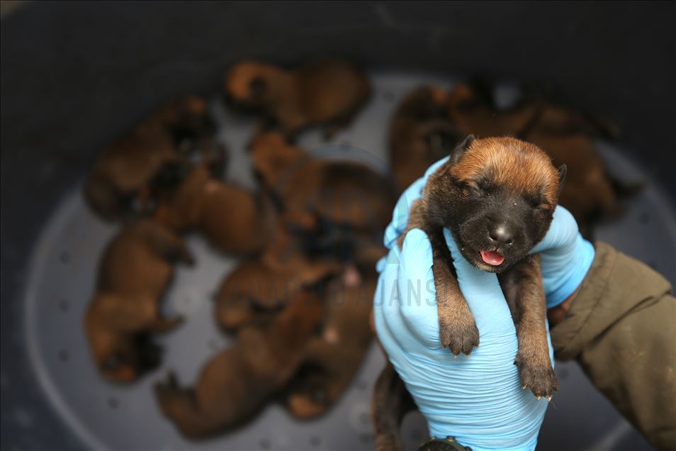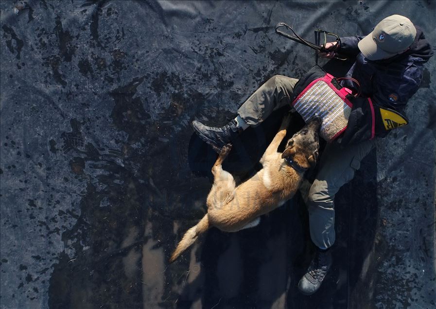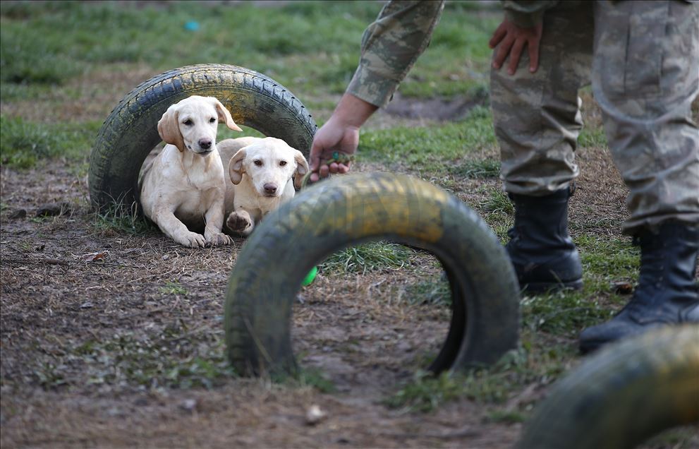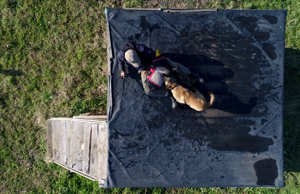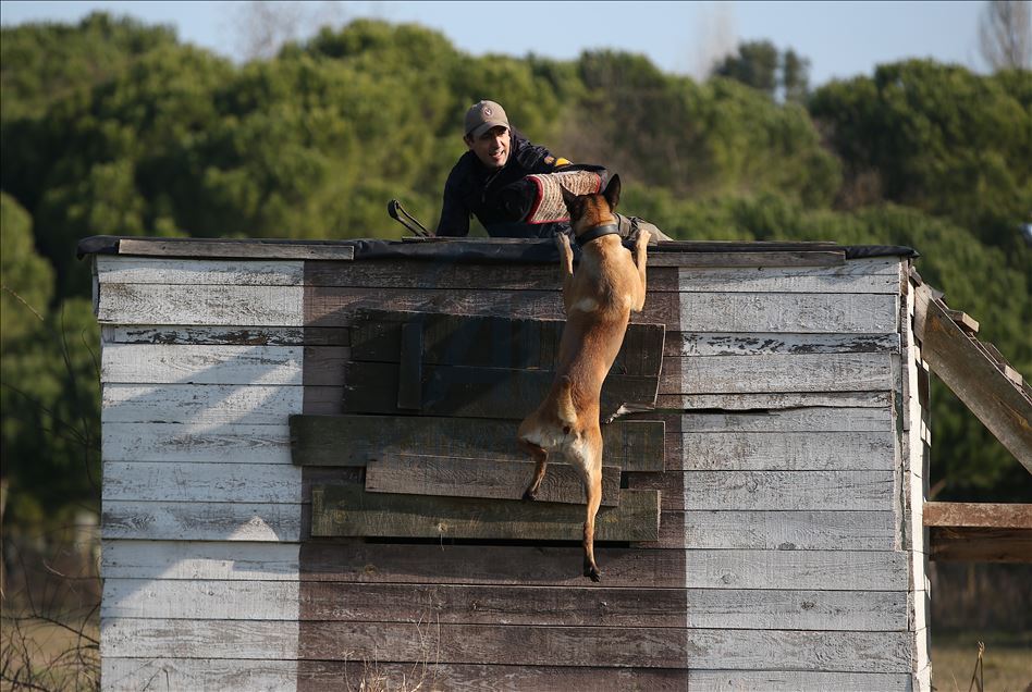 Military working dogs are being trained by Turkish soldiers at Military Veterinary School and Training Command at Gemlik district of Bursa, Turkey on January 17, 2020. Military trained dogs carrying out missions such as reconnaissance of mines and bombs in the risky operations.