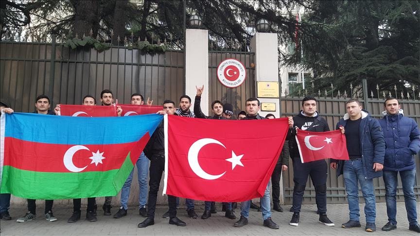 Georgian citizens of Azerbaijani descent rallied outside the Turkish embassy in capital Tiblisi on Monday in solidarity with Turkey’s ongoing Afrin operation.