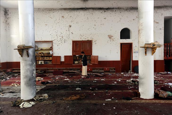 Officials told Anadolu Agency that the attack happened at Al-Muayd Mosque in al-Garaf district, which is believed to be a stronghold of the Shia Houthi militia.