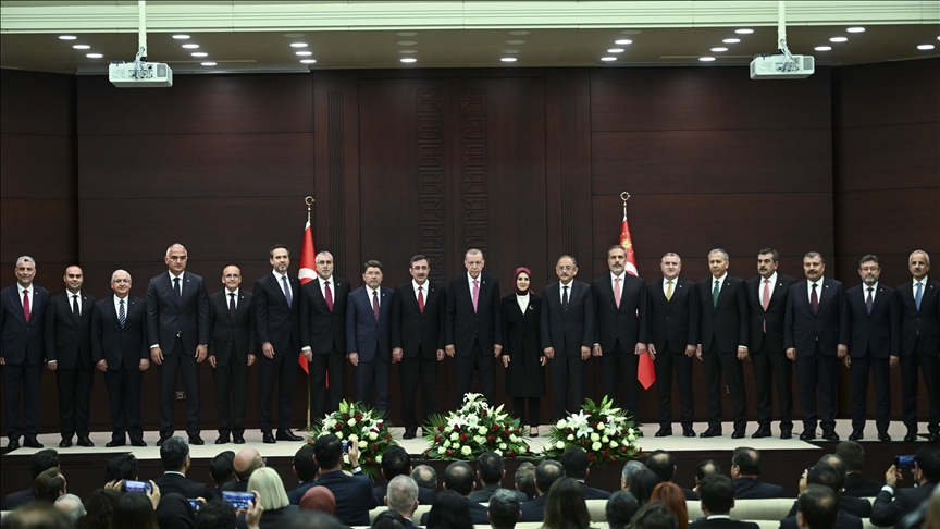 Recep Tayyip Erdogan on Saturday unveiled Türkiye's new Cabinet at the Cankaya Palace in the capital Ankara after he was sworn in as president in parliament.