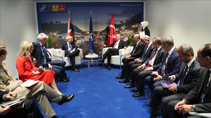 Türkiye's President Recep Tayyip Erdogan on Wednesday met British Prime Minister Boris Johnson on the sidelines of the NATO summit in Madrid.