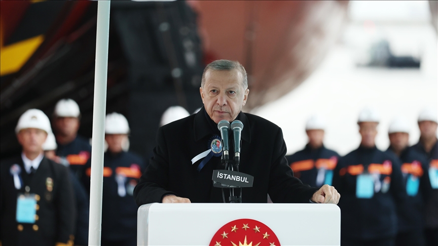 "No matter who terrorists collude with, Türkiye will always hold them accountable for every drop of blood they shed," Recep Tayyip Erdogan said at the launching ceremony of the third vessel of the four MILGEM Ada class corvettes – a joint venture of Türkiye and Pakistan – at the Istanbul Shipyard.