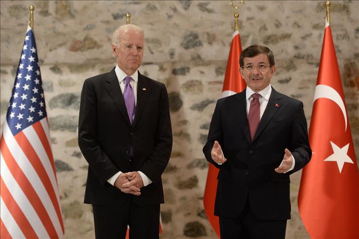 Welcoming Biden at Dolmabahce Palace, Davutoglu praised the cooperation between Turkey and the U.S. as playing a key role in addressing crises in the Middle East.