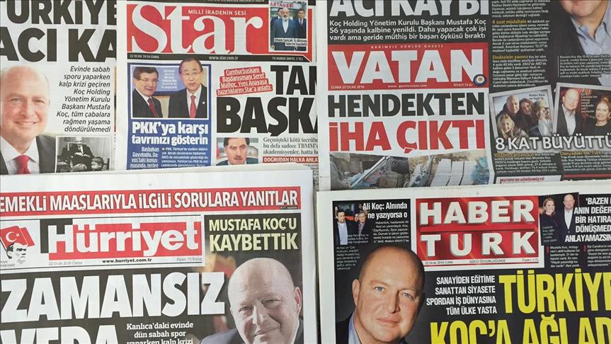 Friday dailies mainly covered death of Mustafa Koc, the chairman of the board of Turkey’s largest company Koc Holding.