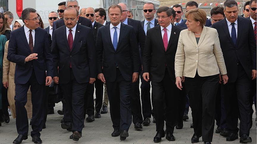 Turkish Prime Minister Ahmet Davutoglu and German Chancellor Angela Merkel visited Syrian refugees on Saturday in Turkey’s southeastern province of Gaziantep’s Nizip district.