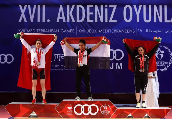 Tukey's Sibel Simsek won gold in women's 63kg weightlifting with her 100kg in snatch at the 17th Mediterranean Games on Sunday while she claimed the silver with 121kg in clean and jerk.