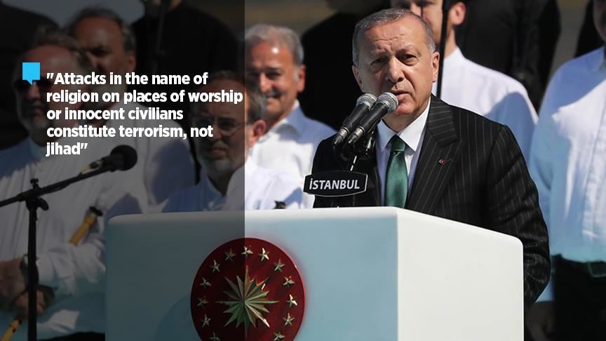 "Attacks in the name of religion on places of worship or innocent civilians constitute terrorism, not jihad," said Erdogan.