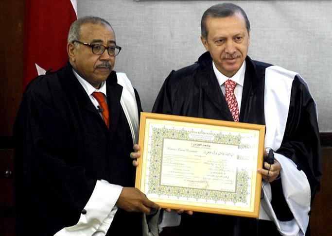 Turkish Prime Minister Recep Tayyip Erdogan, who is currently in Algeria, was presented with the title of honorary doctorate by the University of Algiers on Wednesday.