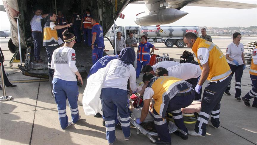 The 24 casualties arrived at a military airport in Ankara accompanied by 12 medical teams aboard a military Hercules C-130 aircraft following a five-hour flight from Saudi Arabia.