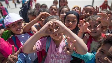 "Little Amal," which set out from southeastern Gaziantep province on July 27 in order to raise awareness about the difficulties of refugee children on their journey to Europe with or without their families, met with children and their families who came to see her off at Saglik Beach in Izmir province's Cesme district.