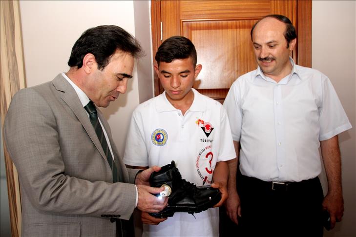 “I thought of how I could produce electricity for places where there is no power. For example, during trekking or hunting,” Furkan tells Anadolu Agency. “Then I started working on a shoe, something which is an inseparable part of us.”