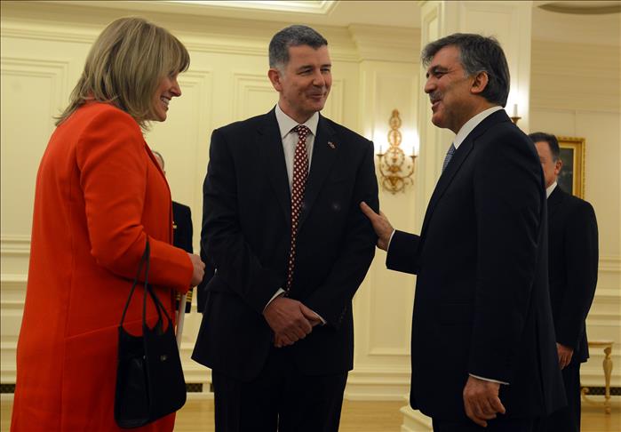 Moore, submitted his letter of credence to Gul at the Cankaya Presidential Palace which was followed by the two getting their photograph taken.