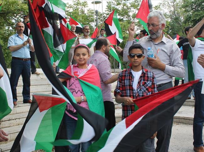 The event, organized in Ankara and Istanbul by Turkish human rights association Mazlumder, saw the demonstrators wave Palestinian flags and chant slogans to protest the Jewish state and voice their claim on the historic city of Jerusalem and the mosque of Masjid al-Aqsa that it hosts, both venerated in Islamic tradition.