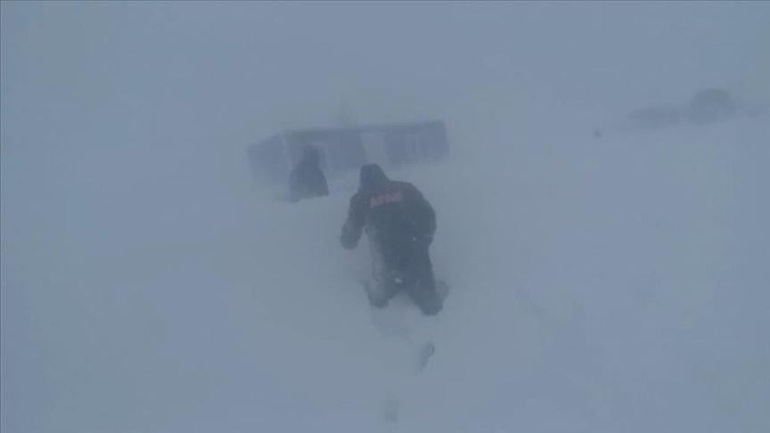 Due to heavy snow, two workers of a private company in Mount Ida national park, Balikesir province, had become stranded along with eight dogs.