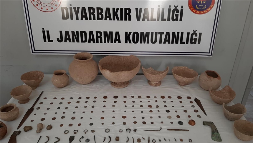 Gendarmes detained five people in the Cinar district of southeastern Diyarbakir province who were trying to sell the artifacts. During a raid, 160 artifacts, including coins, rings and spearheads, were recovered and transferred to the provincial museum directorate.