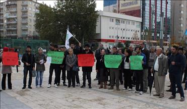 A group of aggrieved families in southeastern Turkey continued a sit-in protest on Monday against the YPG/PKK terror group for the 329th day outside the office of a political party.