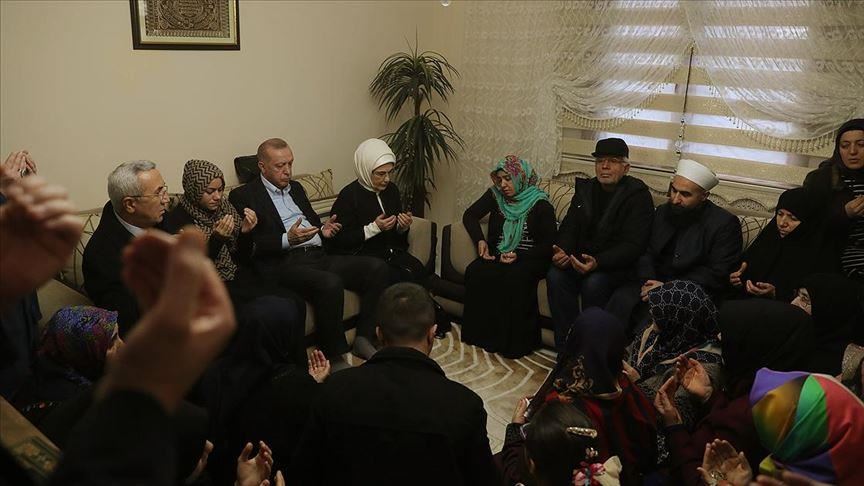 Turkish President Recep Tayyip Erdogan and the First Lady Emine Erdogan on Sunday visited a family of a Turkish martyr in Istanbul, and offered their condolences.
