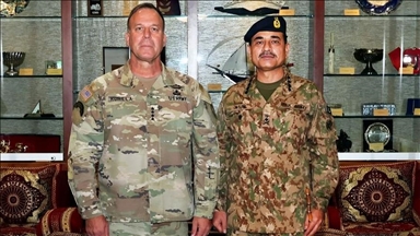 Mevlut Cavusoglu and Jeyhun Bayramov met after a dinner hosted by Pakistani Foreign Minister Shah Mahmoud Qureshi in honor of his Turkish and Azerbaijani counterparts.