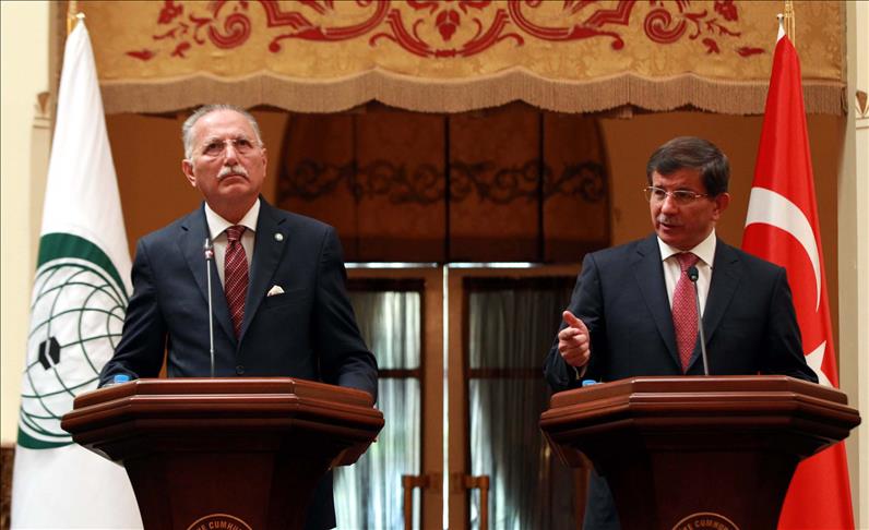 Turkish Foreign Minister Ahmet Davutoglu responded to questions of reporters during a press conference with Secretary-General Ekmeleddin Ihsanoglu of the Organization of Islamic Cooperation (OIC) in capital Ankara.