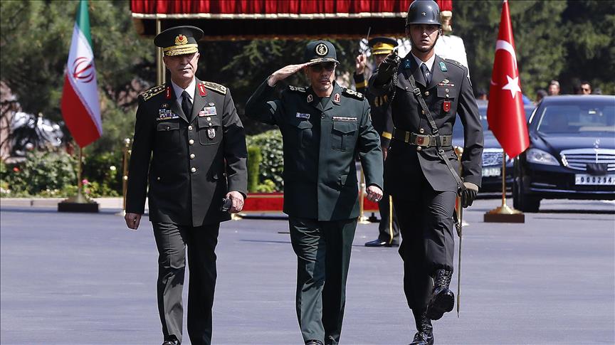 The head of Iran’s military met his Turkish counterpart Gen. Hulusi Akar on Tuesday in a rare meeting between two such senior military figures, a military official said.