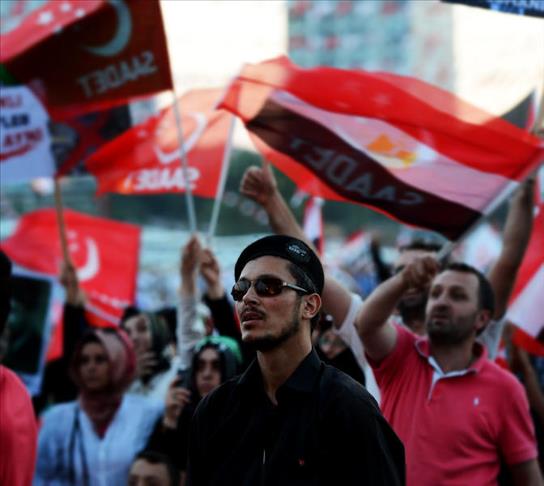 "Our voice here in Kazlicesme is echoed in Tahrir and Rab'a al-Adewiya squares. This black coup, this dirty intervention, this bloody game is a betrayal to the Egyptian people. History will never forgive it. This coup is a betrayal," SP Chairman Mustafa Kamalak told the crowd.
