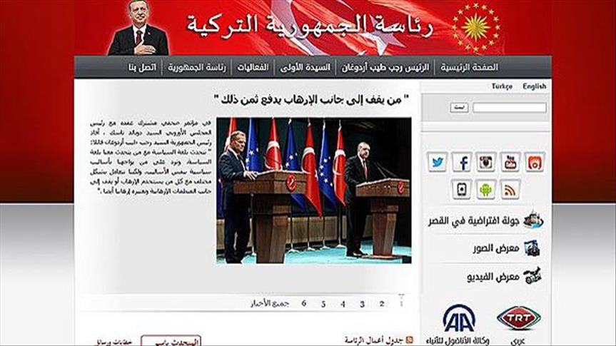 Apart from statements, the Arabic edition will give visitors a virtual tour of Turkey's presidential palace, Bestepe Millet Mosque (Nation Mosque), Ataturk Museum House and Office of the Chief Aide in Arabic language.