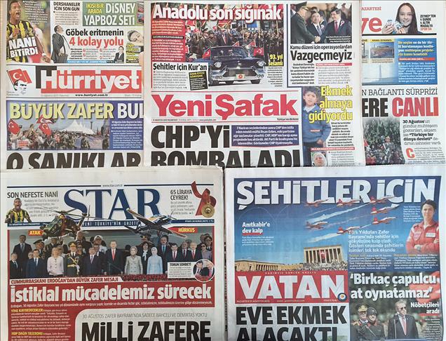 Turkish dailies on Monday mainly covered celebrations of the Victory Day and reported Kurdistan Workers’ Party’s (PKK) attacks in southeastern Turkey.