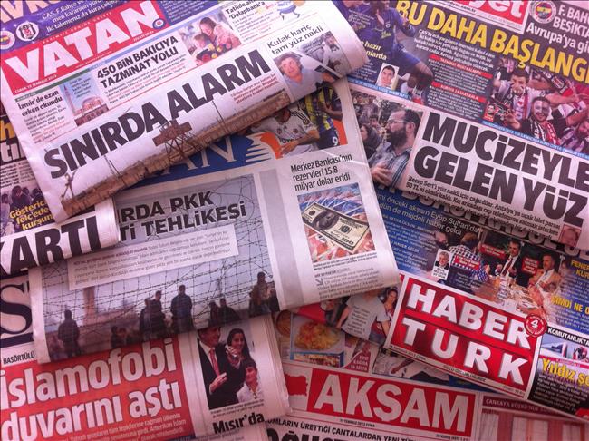 Daily SOZCU said Turkey's new neighbor was clear, adding PYD, the Syrian branch of the outlawed PKK, rapidly spreaded in the north of the country and took the control of border gate across Ceylanpinar town of southern province Hatay. Daily VATAN headlined "Alarm on border", in reference to PYD's control of Syria-Turkey border saying the terrorist organization took the control of four regions on Turkey's border and its new target was Tel Abyad region across Akcakale town. Hereupon, Turkish General Staff took new security measures.