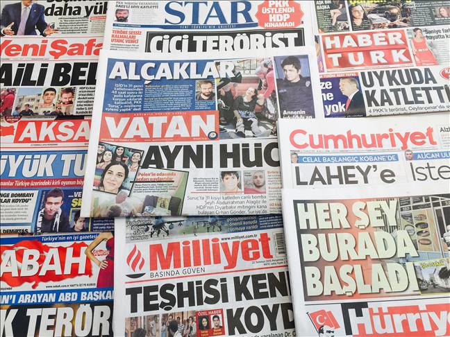 Turkish dailies on Thursday covered the murder of two policemen Wednesday as well as Monday's deadly bomb attack, both in Turkey’s southeastern Sanliurfa province near the Syrian border.