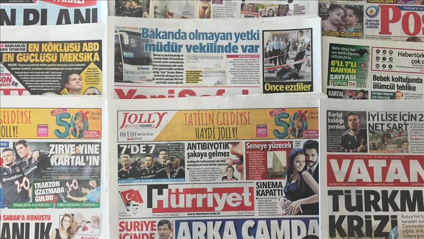 Turkish dailies also covered Belgium raising the terror alert in its capital Brussels to the highest level Saturday as the prime minister warned of an imminent threat.