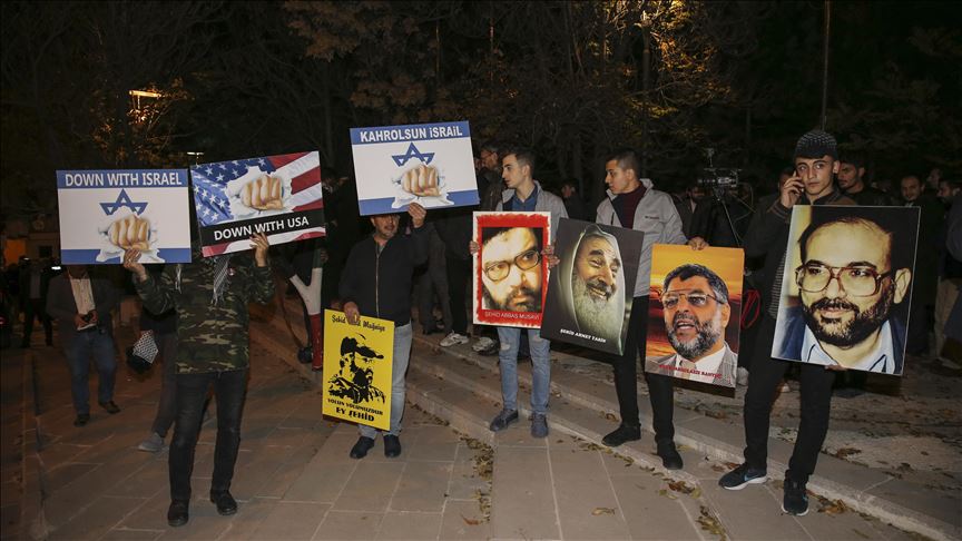 Scores of people and representatives of non-governmental organizations convened in front of Israel's embassy in the Turkish capital Ankara on Thursday to protest against Israel's attacks on Palestinians.